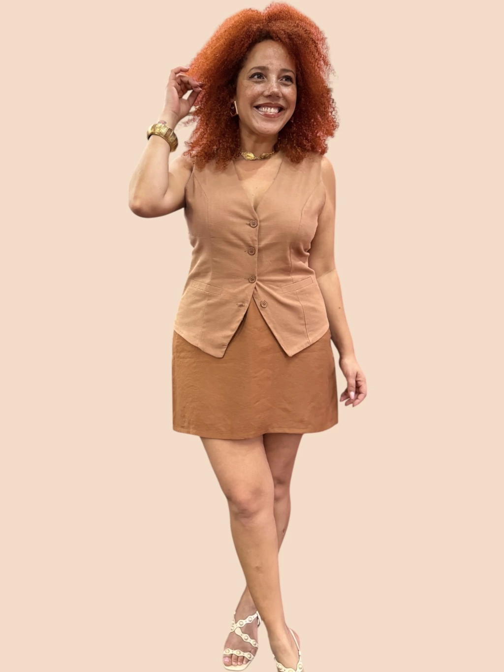 Dica de estilo: combine com a Bata Sarah para um look monocromático sofisticado, ideal para compromissos profissionais, viagens e ocasiões especiais.